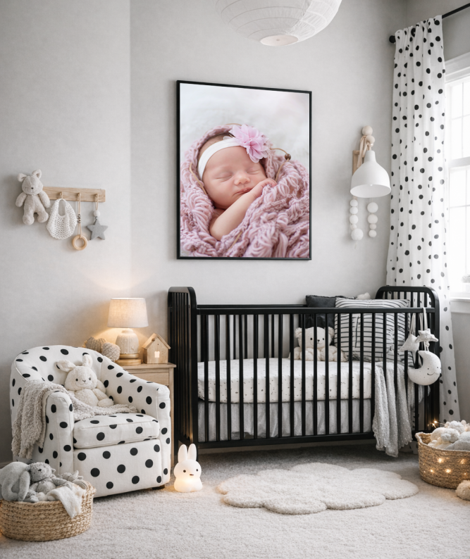 Barnet bör helst vara mellan 2 -14 dagar. Efter 14 dagar rekommenderar jag att man väntar tills barnet kan sitta med stöd eller själv för att fotas.